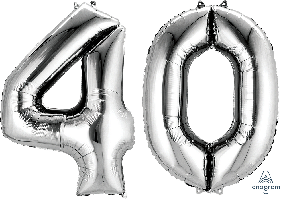 Set doua baloane folie pentru aniversare, Silver, umplute cu heliu, legate cu rafie si greutate