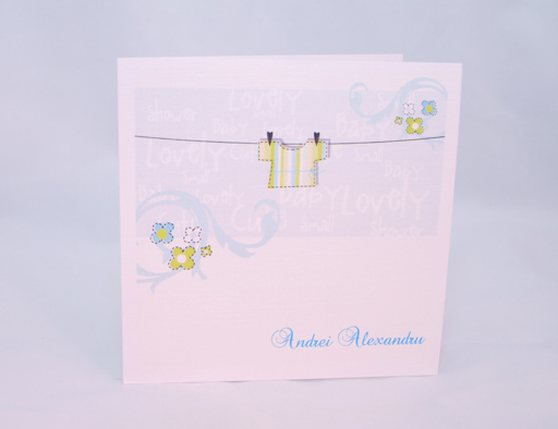 Invitatie botez imprimata pe carton alb Dimensiune 15x15 cm Plic alb inclus in pret Personalizare cu text gratuita Imprimare poza bebe in interior + 0,5 lei