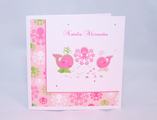 Invitatie botez imprimata pe carton alb Dimensiune 15x15 cm Plic alb inclus in pret Personalizare cu text gratuita Imprimare poza bebe in interior + 0,5 lei