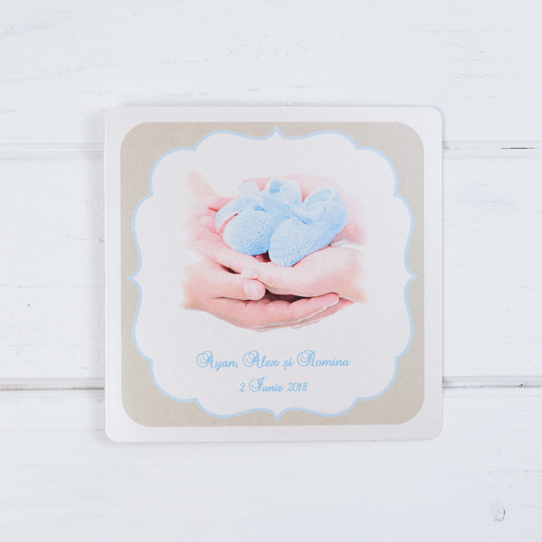 Optional poate fi imprimata si poza bebelusului daca textul ales nu este prea mare + 0,50 lei / buc.