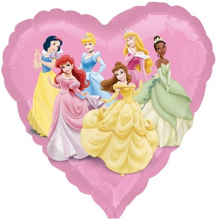 Balon folie pentru petreceri de copii si botezuri in forma de inimioara cu printese umflat cu heliu