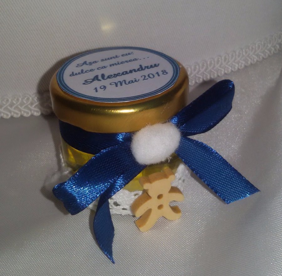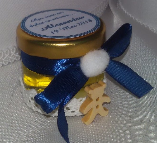 Marturie borcanel cu miere pentru botez baietel, tematica ursulet