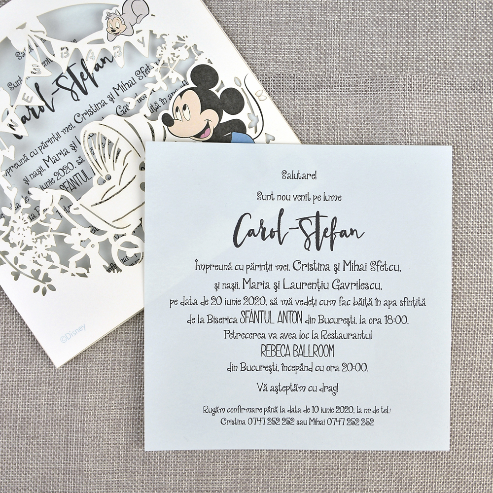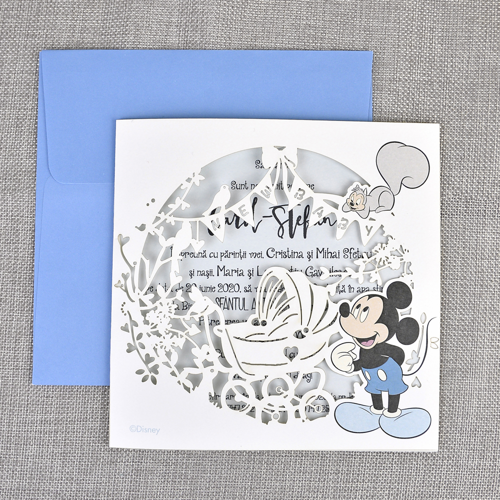 Invitatie botez colectia Disney, pentru botez fetita, cu Mickey Mouse