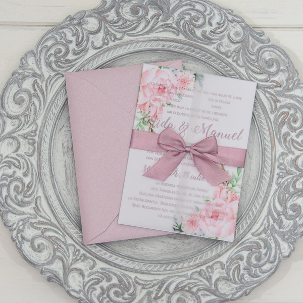 Invitatiile se livreaza asamblate, pliate si bagate in plicuri