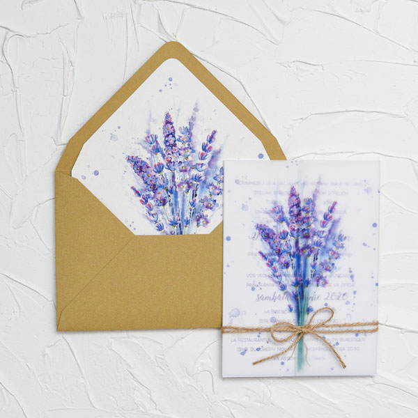 Invitatiile se livreaza asamblate, pliate si bagate in plicuri