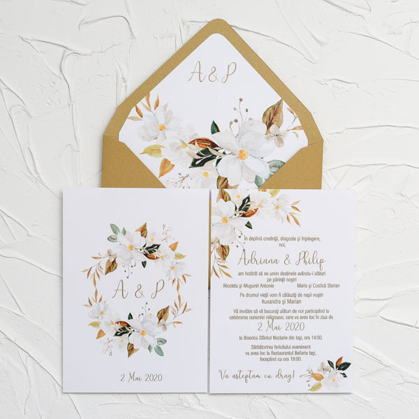 Invitatiile se livreaza asamblate, pliate si bagate in plicuri