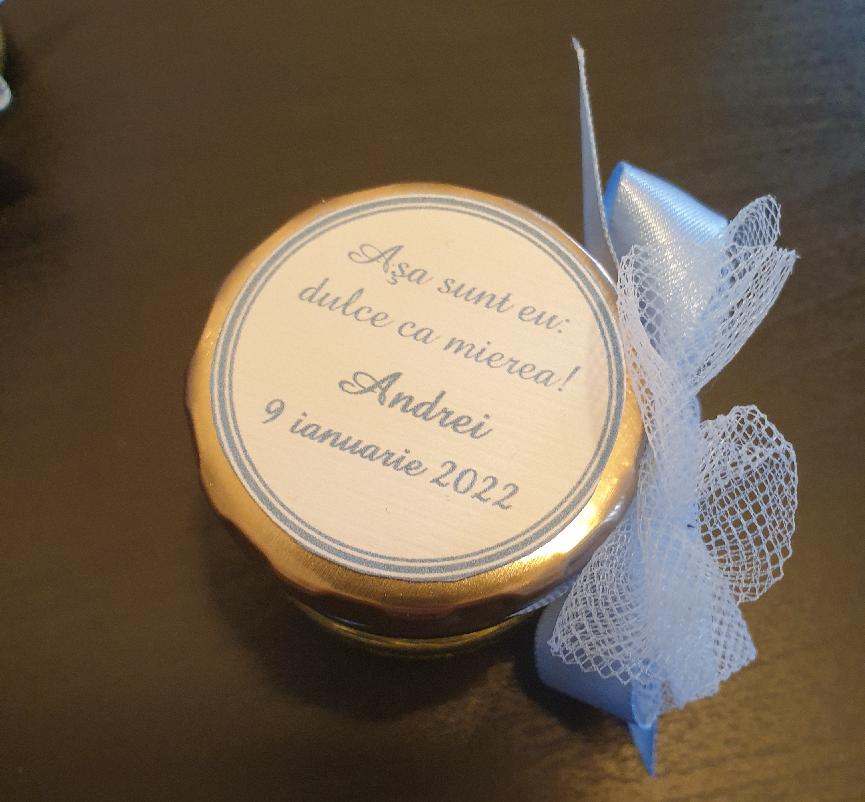 Personalizarea se face pe capac, cu un biletele din carton lipit, personalizat cu mesaj, nume si data