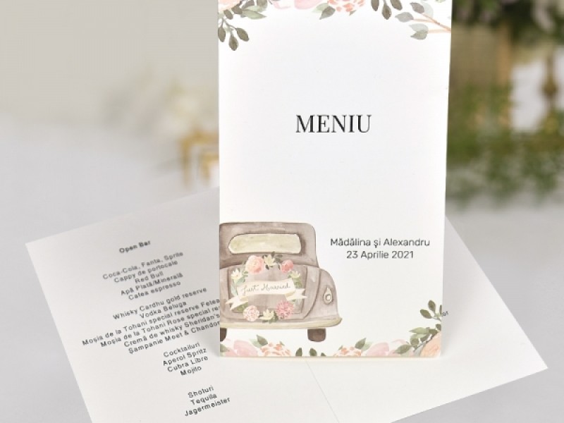 Meniu pentru nunta din carton