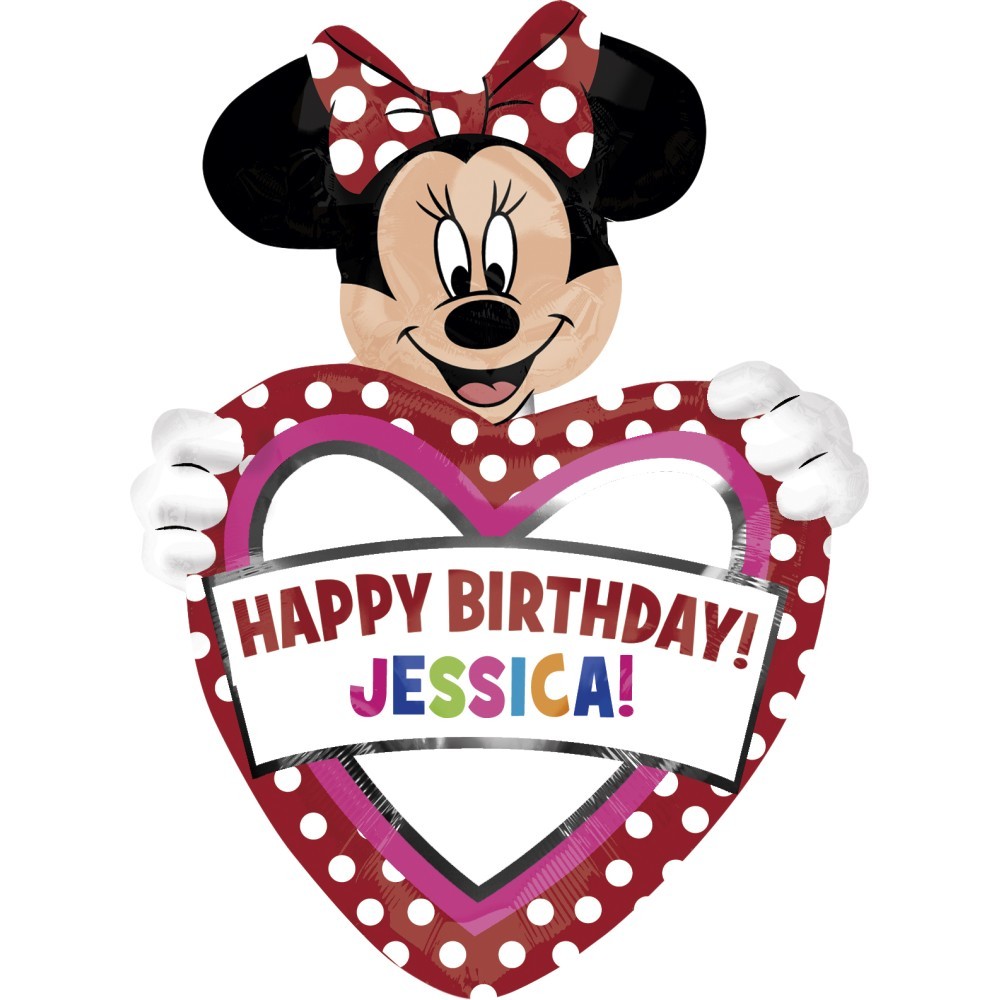 Balon folie inimioara cu capul lui Minnie, cu heliu. Pe steluta se personalzeaza numele copilasului