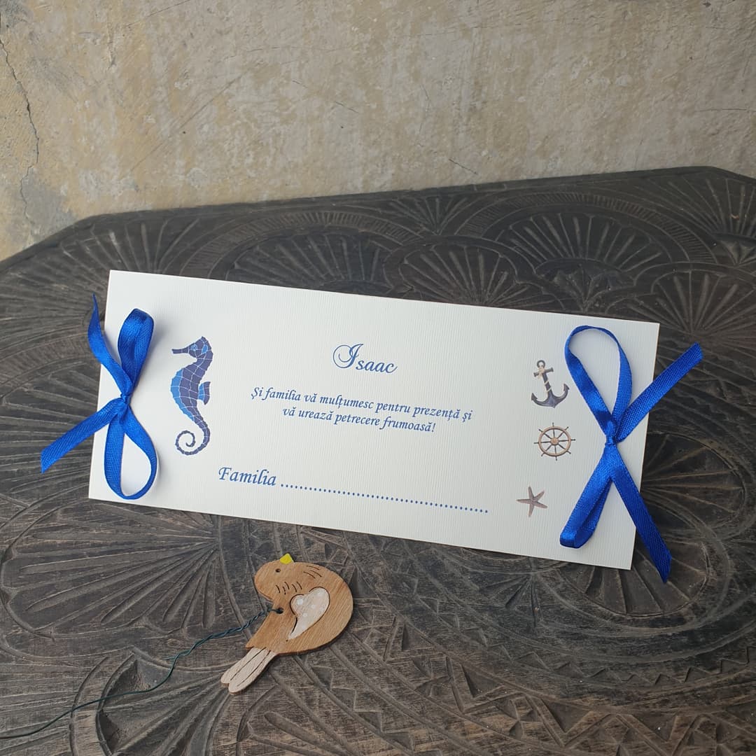 Plic de bani pentru botez baietel sau fetita, tematica marina, personalizat cu elemente marine, numele bebelusului si mesaj de urare