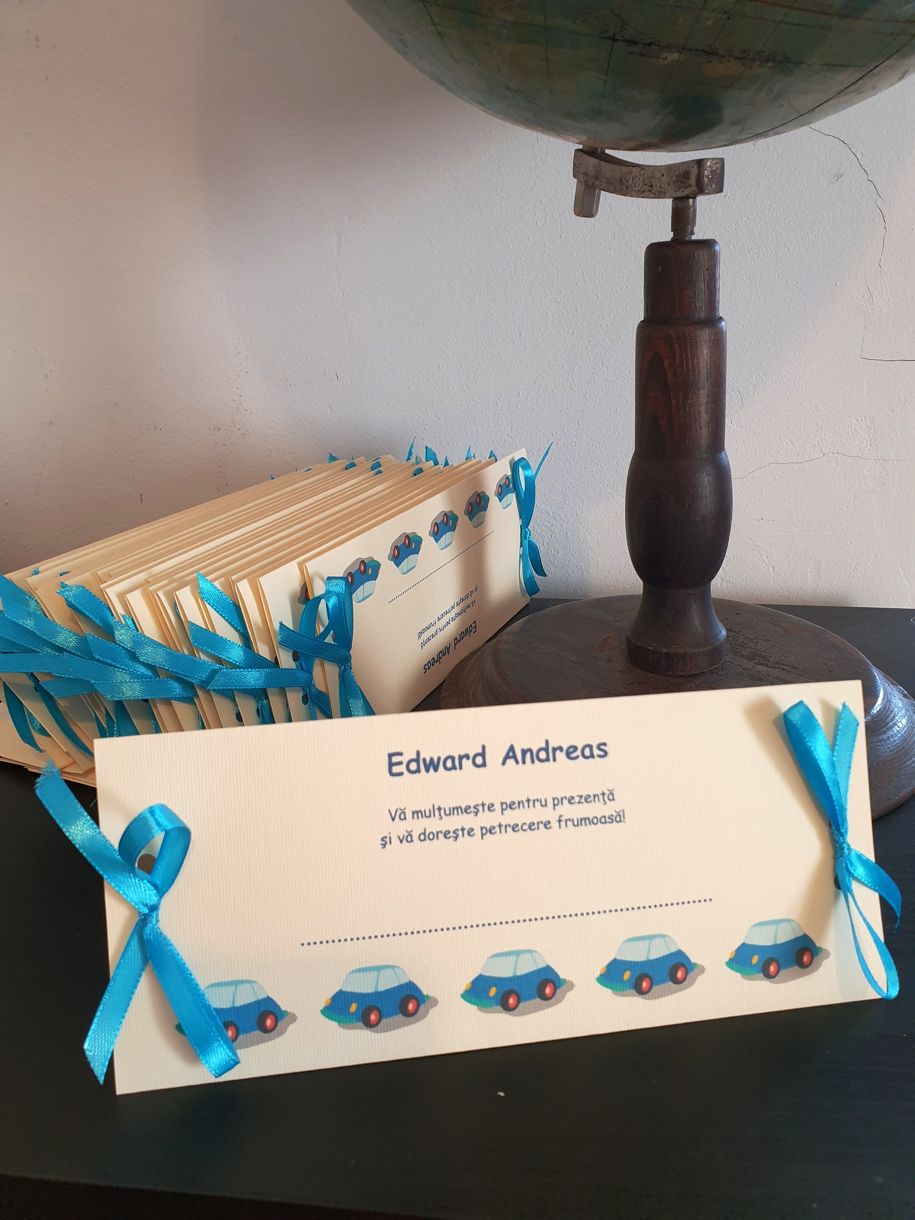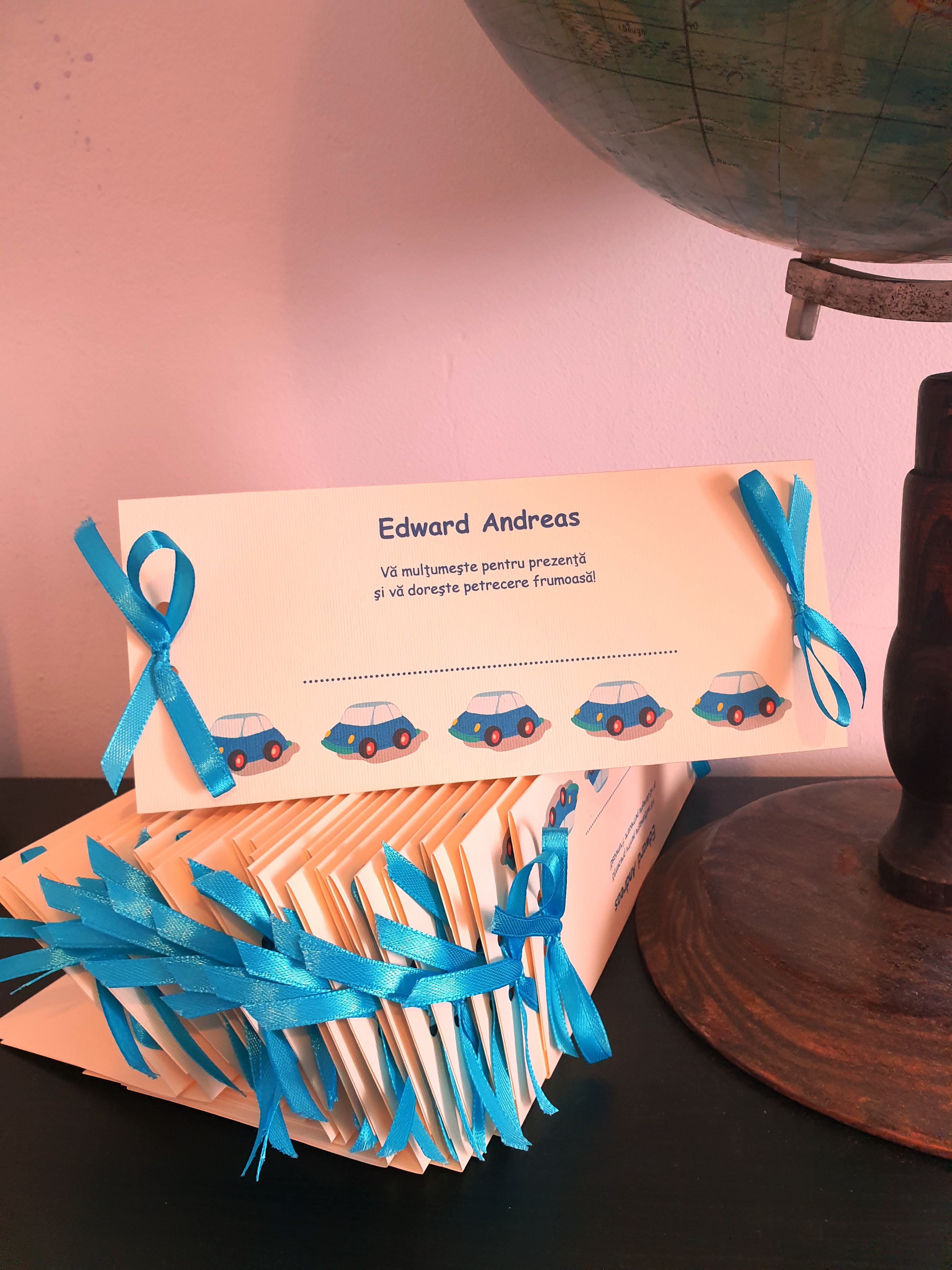 Pretul include plicul de bani, realizat din carton, accesorizat cu fundita la alegere, asamblat, imprimat cu nume copil si mesaj, grafica